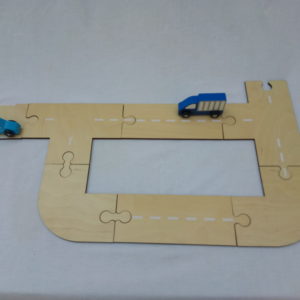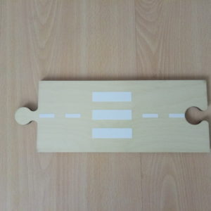 €22.00Set van twee recht, twee T-stukken, twee bochten, twee tussenstukjes en een parkeerstuk met twee autootjes.